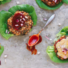 ContinueLettuce-Wrapped BBQ Quinoa, Kale & Corn Veggie Burgers With Old Bay Cheddar – Recipe