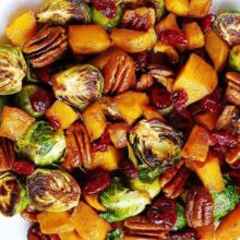 Roasted Brussels Sprouts, Cinnamon Butternut Squash, Pecans, and Cranberries – Recipe