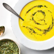 Sweet pumpkin lends a creamy, silky texture to this autumnal soup, while fresh pistou brightens it up. Serve extra pistou with grilled meats, roasted vegetables, and buttered pasta. Ingredients PISTOU 1 tablespoon vegetable oil 1/2 cup raw pepitas 1 cup chopped fresh flat-leaf parsley 1/2 cup olive oil, divided 1 1/2 tablespoons fresh lemon juice…